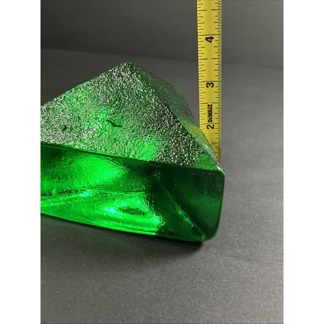 This is a stunning pair of vintage emerald green Blenko glass pyramid bookends. One pyramid has a chip on one corner, but is smooth, not sharp. Does not detract from this amazing set in the least as it is easily hidden. A rare find! See pics for condition and measurements.